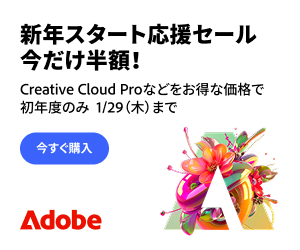 Adobe公式サイトで「Creative Cloud Pro」「Photoshop」「Illustrator」「Premiere」が初年度50%OFF!Adobe公式サイトはこちら >